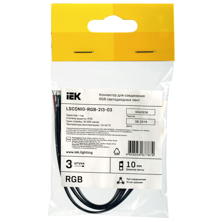Коннектор 3шт RGB 10мм (15см-разъем) IEK