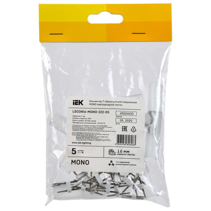 Коннектор Т-образный 5шт MONO 16мм (разъем-разъем-разъем) IEK