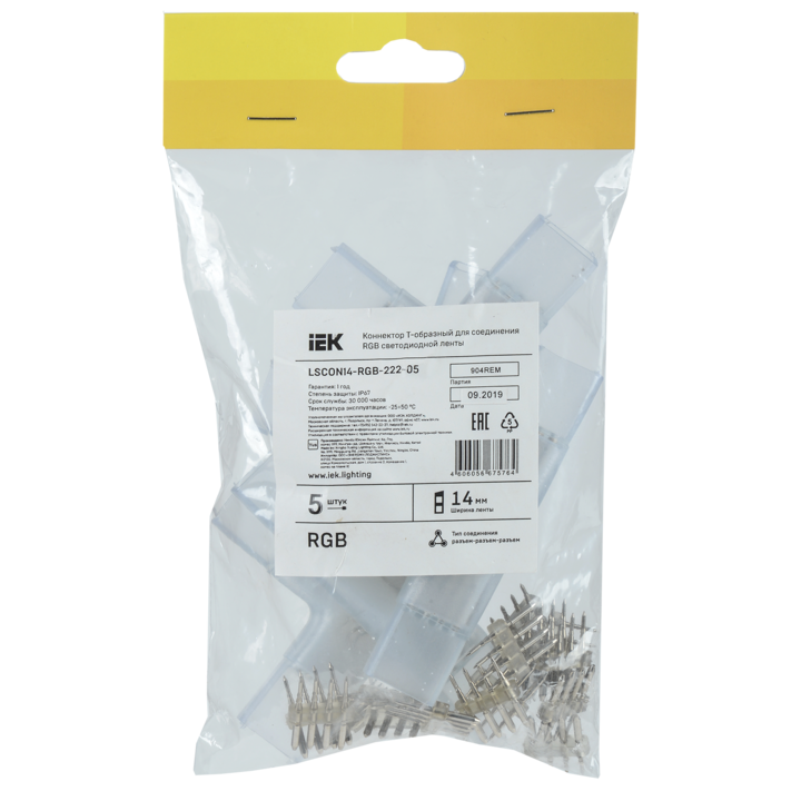 Коннектор Т-образный 5шт RGB 14мм (разъем-разъем-разъем) IEK