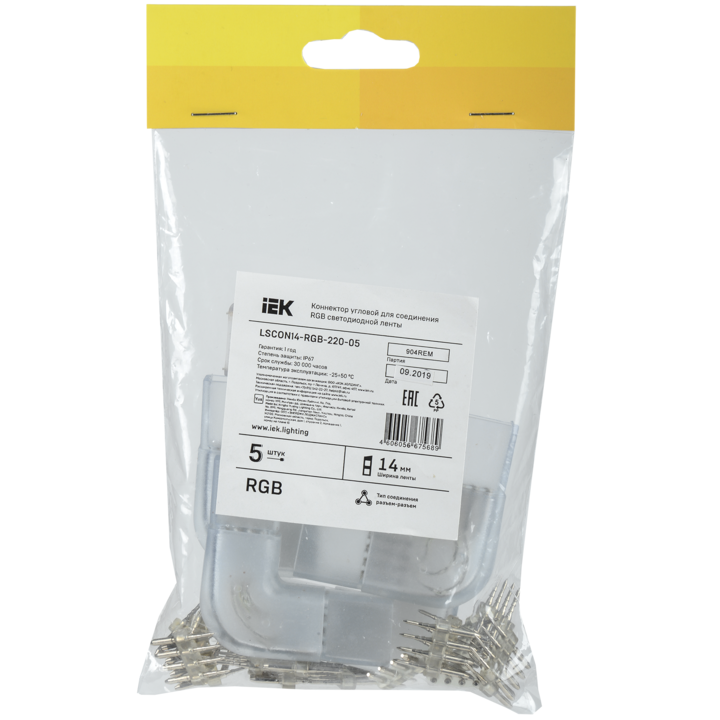 Коннектор угловой 5шт RGB 14мм (разъем-разъем) IEK