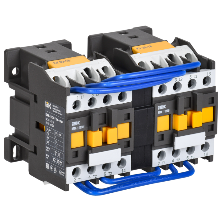 Контактор КМИ-11230 реверс 12А 400В/АС3 2NO IEK