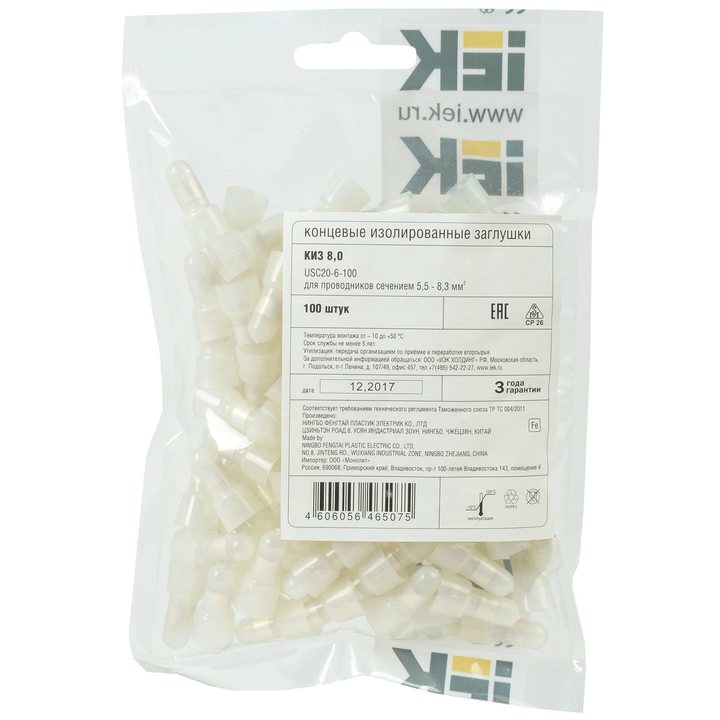 Концевая изолирующая заглушка КИЗ 8,0мм2 для соединения алюминиевых проводов (100шт) IEK