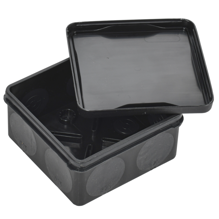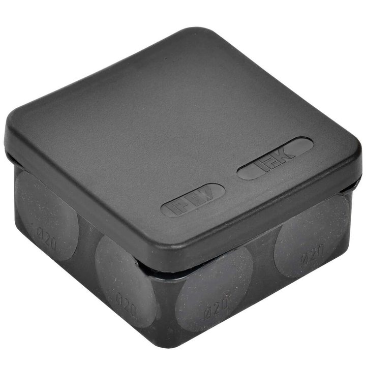 Коробка распаячная двухкомпонентная КМ42435 для открытой проводки безгалогенная (HF) 80х80х40мм IP67 8 вводов черная IEK