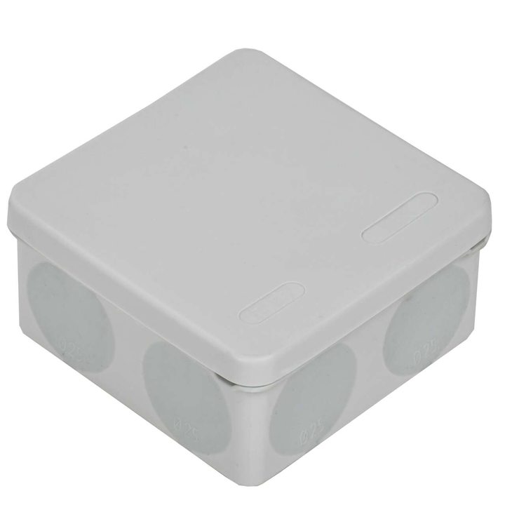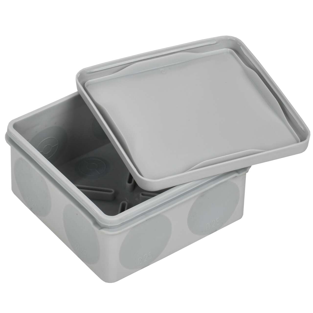 Коробка распаячная двухкомпонентная КМ42455 для открытой проводки безгалогенная (HF) 100х100х50мм IP67 8 вводов серая IEK