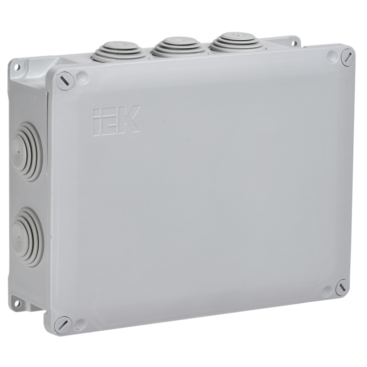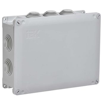 Коробка распаячная КМ для открытой проводки 200х150х60мм с крышкой на винтах IP65 10 гермовводов серая IEK