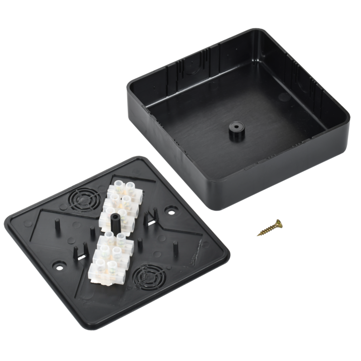 Коробка распаячная КМ для открытой проводки безгалогенная (HF) 100х100х29мм (6 клемм 6мм2) черная (RAL 9005) IEK