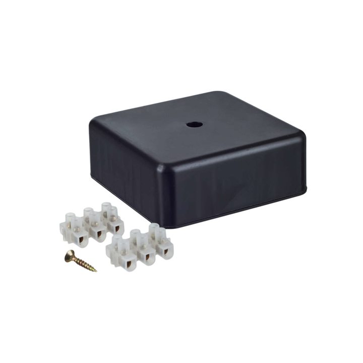 Коробка распаячная КМ для открытой проводки безгалогенная (HF) 75х75х28мм (6 клемм 6мм2) черная (RAL 9005) IEK