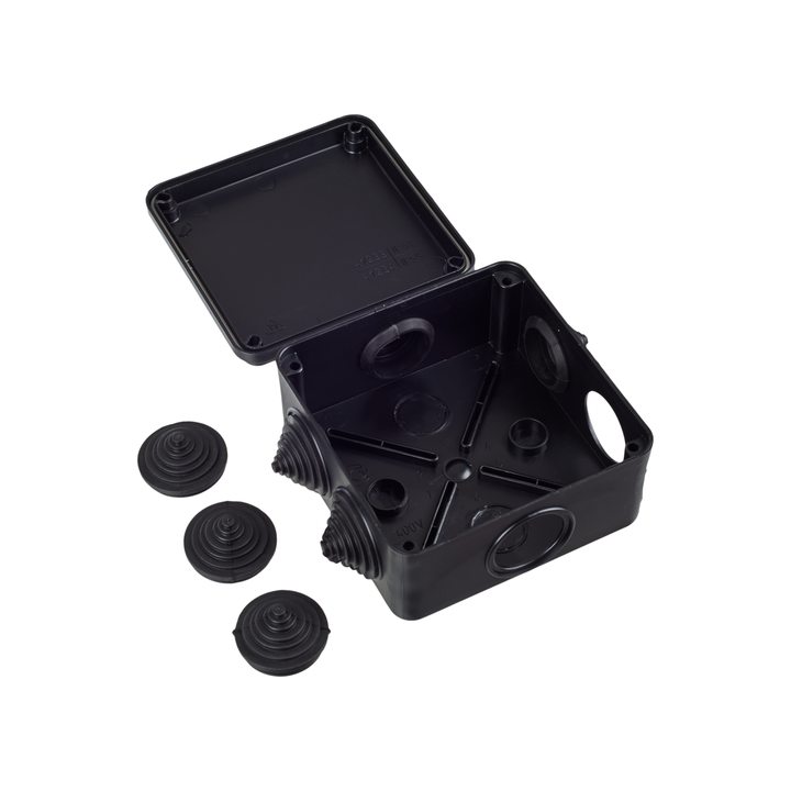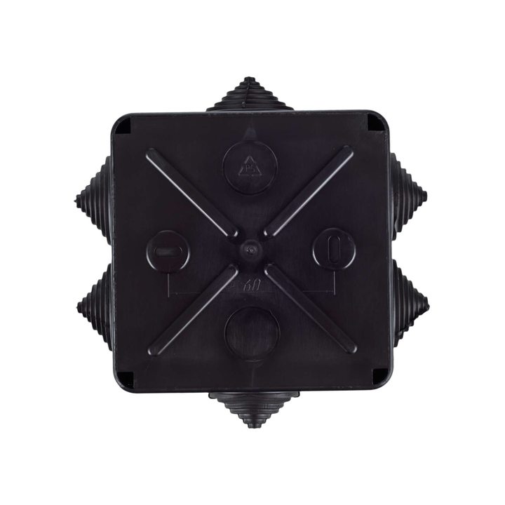 Коробка распаячная КМ41234 для открытой проводки безгалогенная (HF) 100х100х50мм IP55 6 гермовводов черная (RAL 9005) IEK