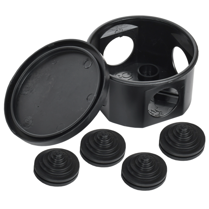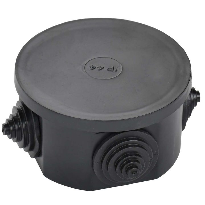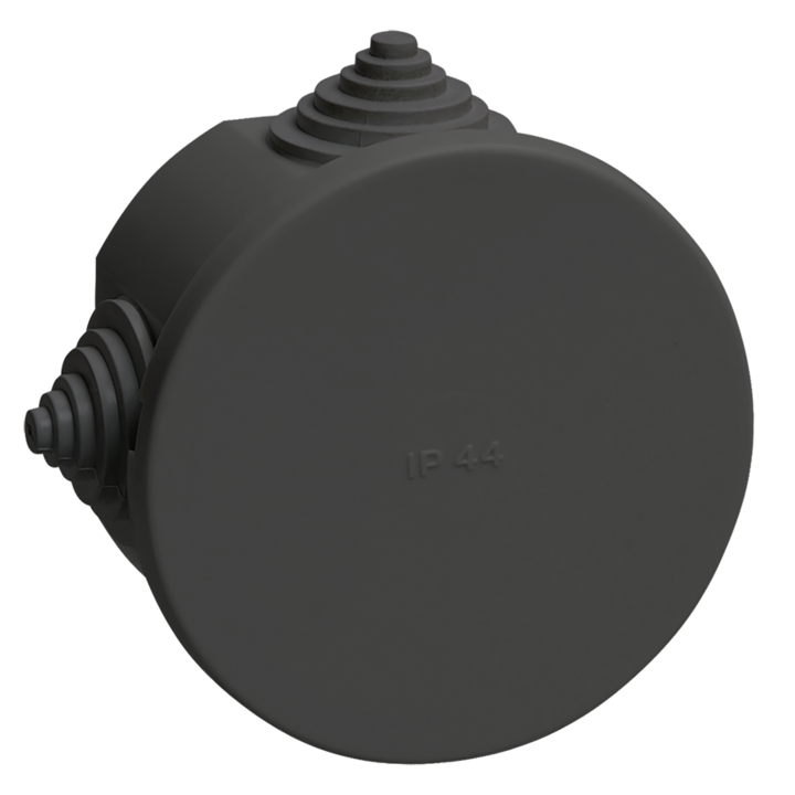 Коробка распаячная КМ41237 для открытой проводки с защелкивающейся крышкой безгалогенная (HF) D=75х40мм IP44 4 гермовводов черная (RAL 9005) IEK