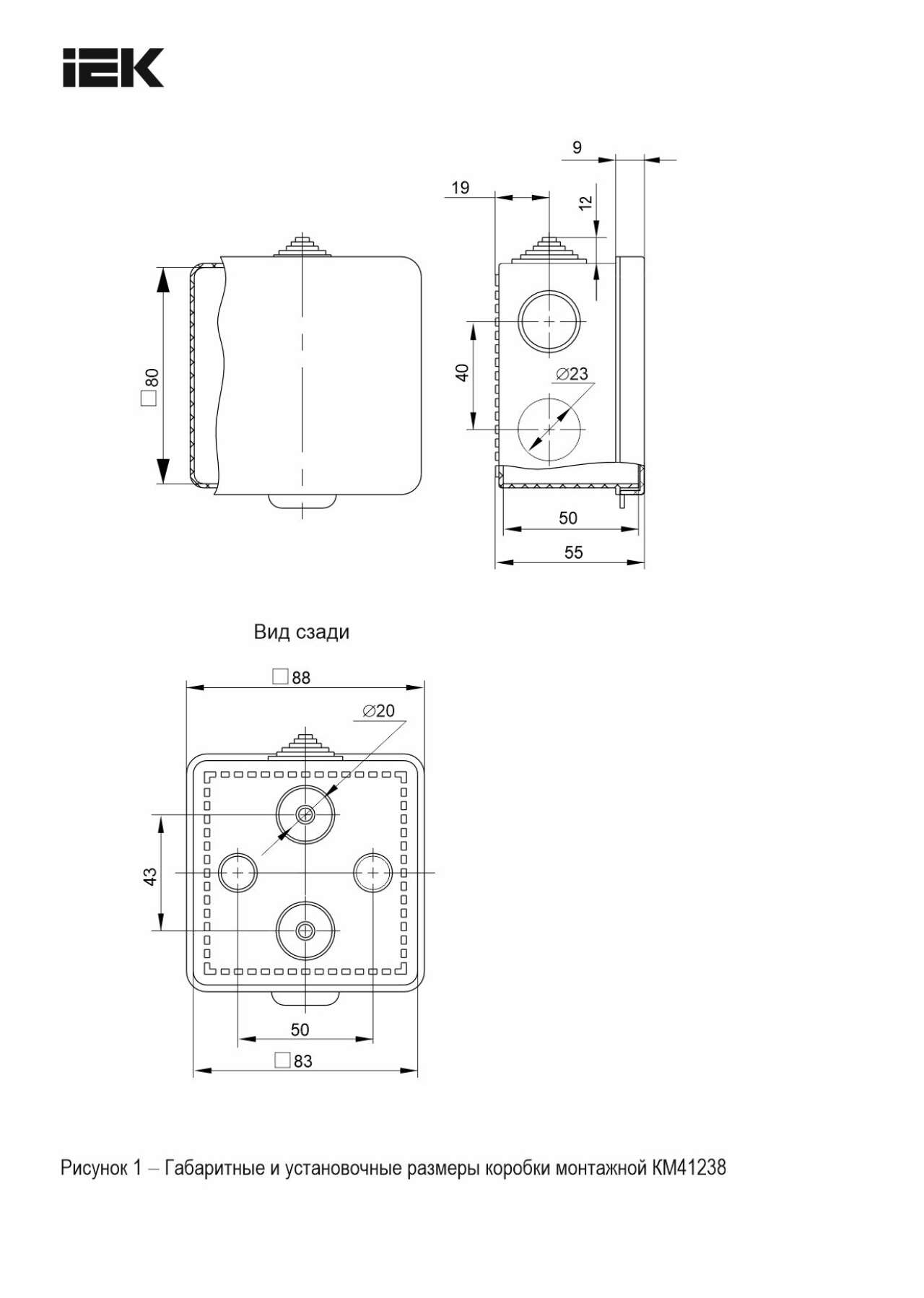 Коробка распаячная КМ41238 для открытой проводки безгалогенная (HF) 80х80х50мм с откидной крышкой IP54 7 гермовводов серая IEK