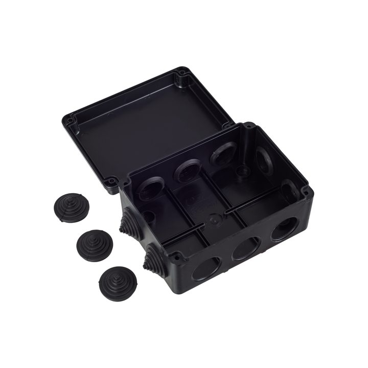 Коробка распаячная КМ41242 для открытой проводки безгалогенная (HF) 150х110х70мм IP55 10 гермовводов черная (RAL 9005) IEK