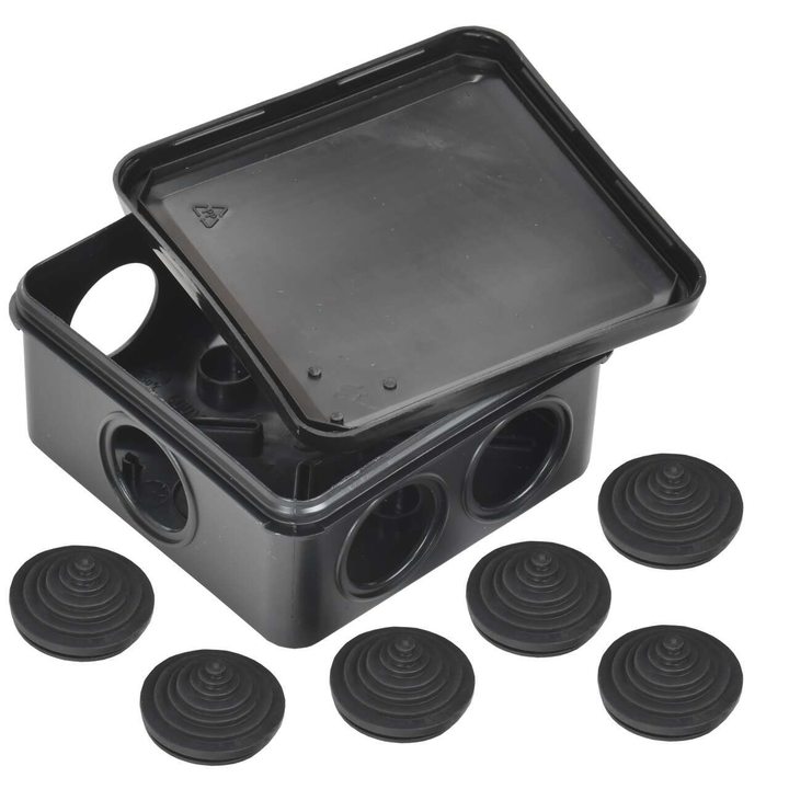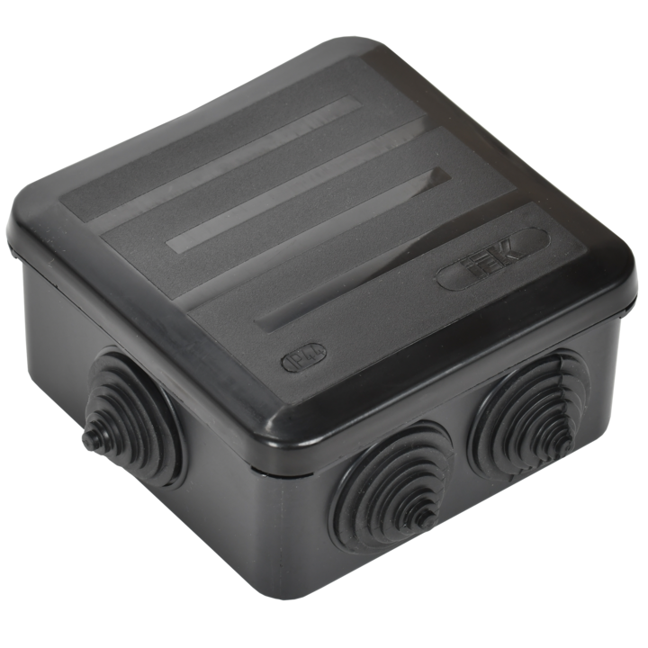 Коробка распаячная КМ41255 для открытой проводки с защелкивающейся крышкой безгалогенная (HF) 100х100х50мм IP44 6 гермовводов черная (RAL 9005) IEK