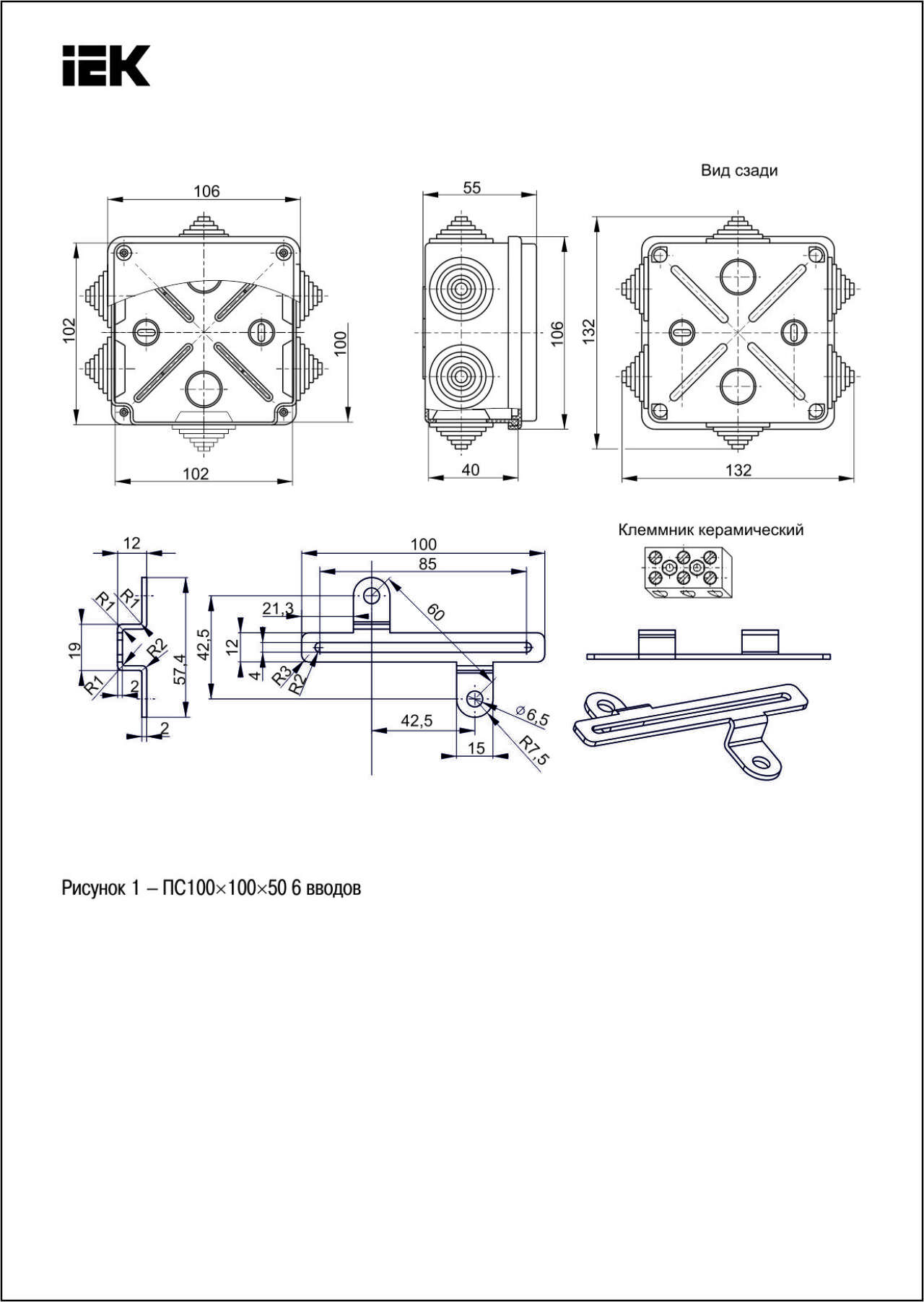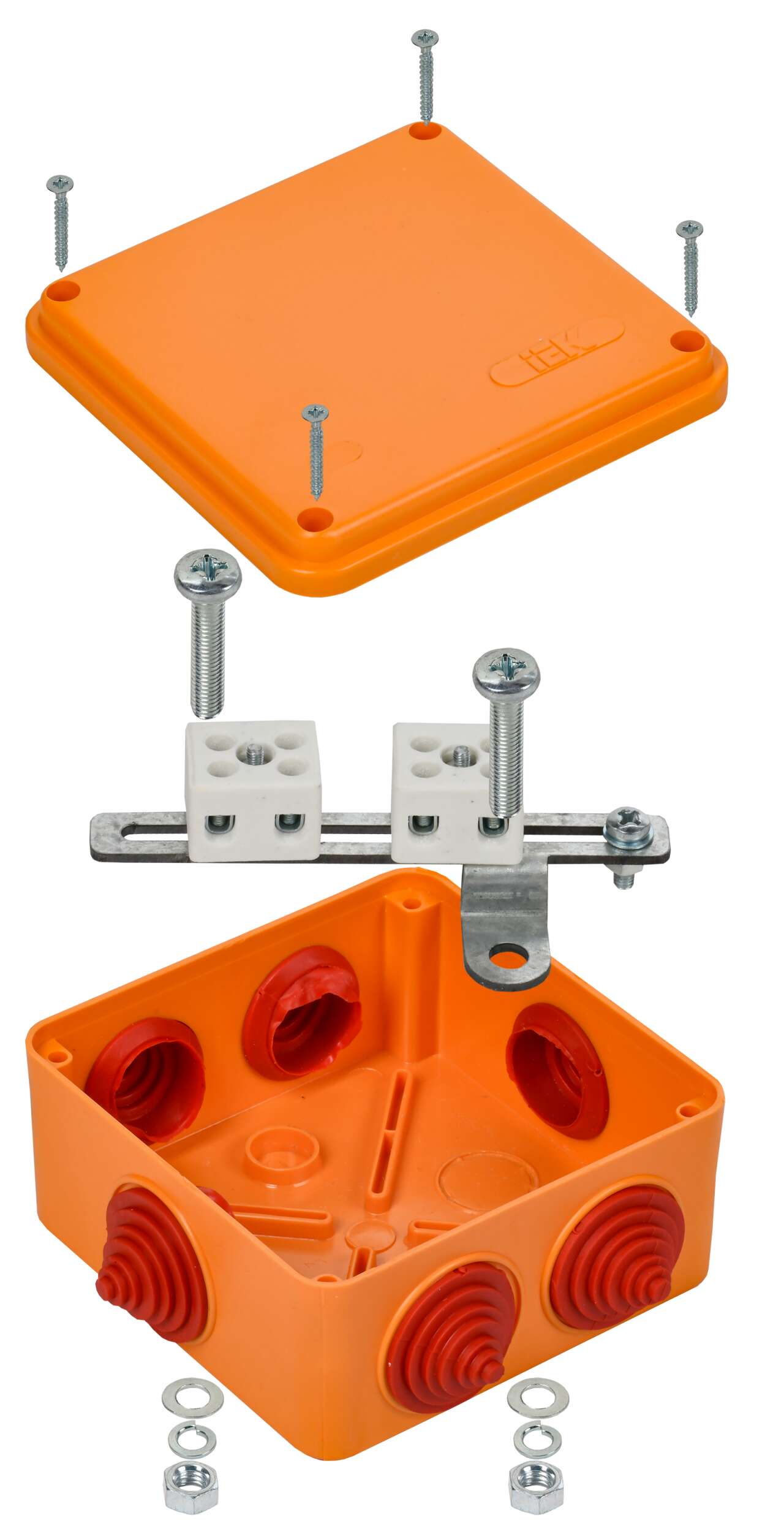 Коробка распаячная огнестойкая ПС безгалогенная (HF) 100х100х50мм 4P 4мм2 IP55 6 вводов IEK