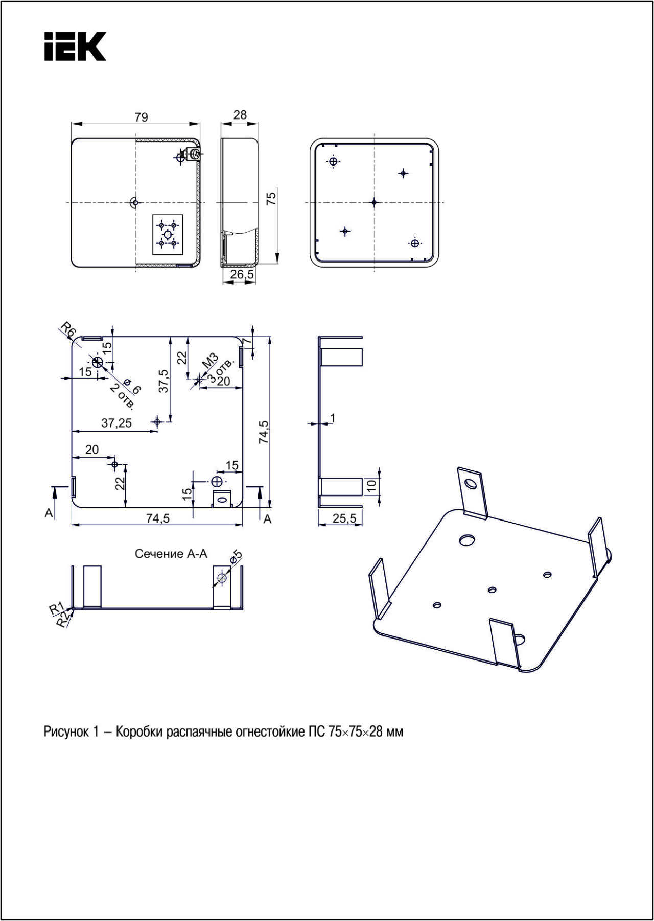 Коробка распаячная огнестойкая ПС безгалогенная (HF) 75х75х28мм 2P 4мм2 IP44 IEK