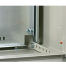 Регулировка монтажной панели по глубине благодаря перфорации приваренного к дну корпуса уголка.
