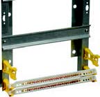 Шины N и PE защелкиваются в держатели стойки, которые устанавливаются в гнезда монтажных профилей при помощи зацепов. Такое расположение шин делает более удобным подвод кабелей.