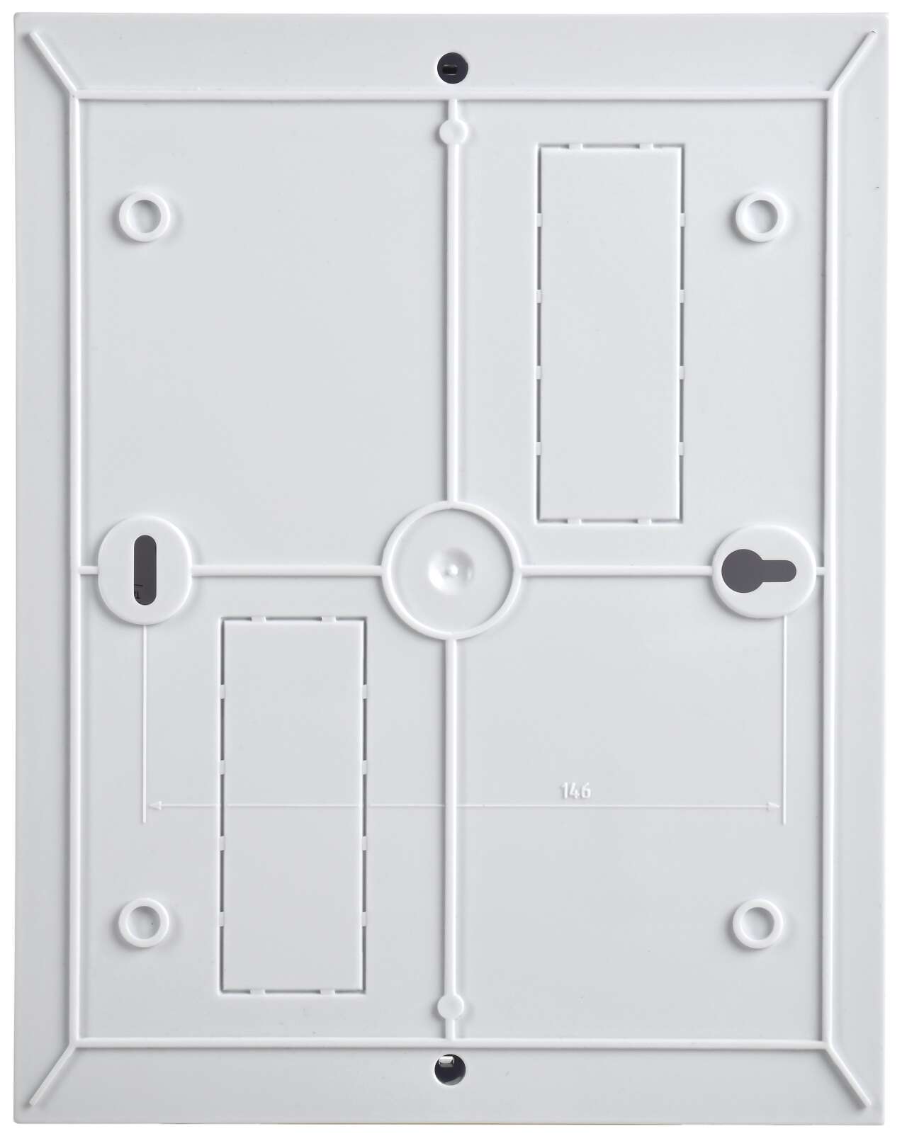 Точное выравнивание и надежный монтаж корпуса на стене обеспечивают точки крепления с указанием размеров между ними.