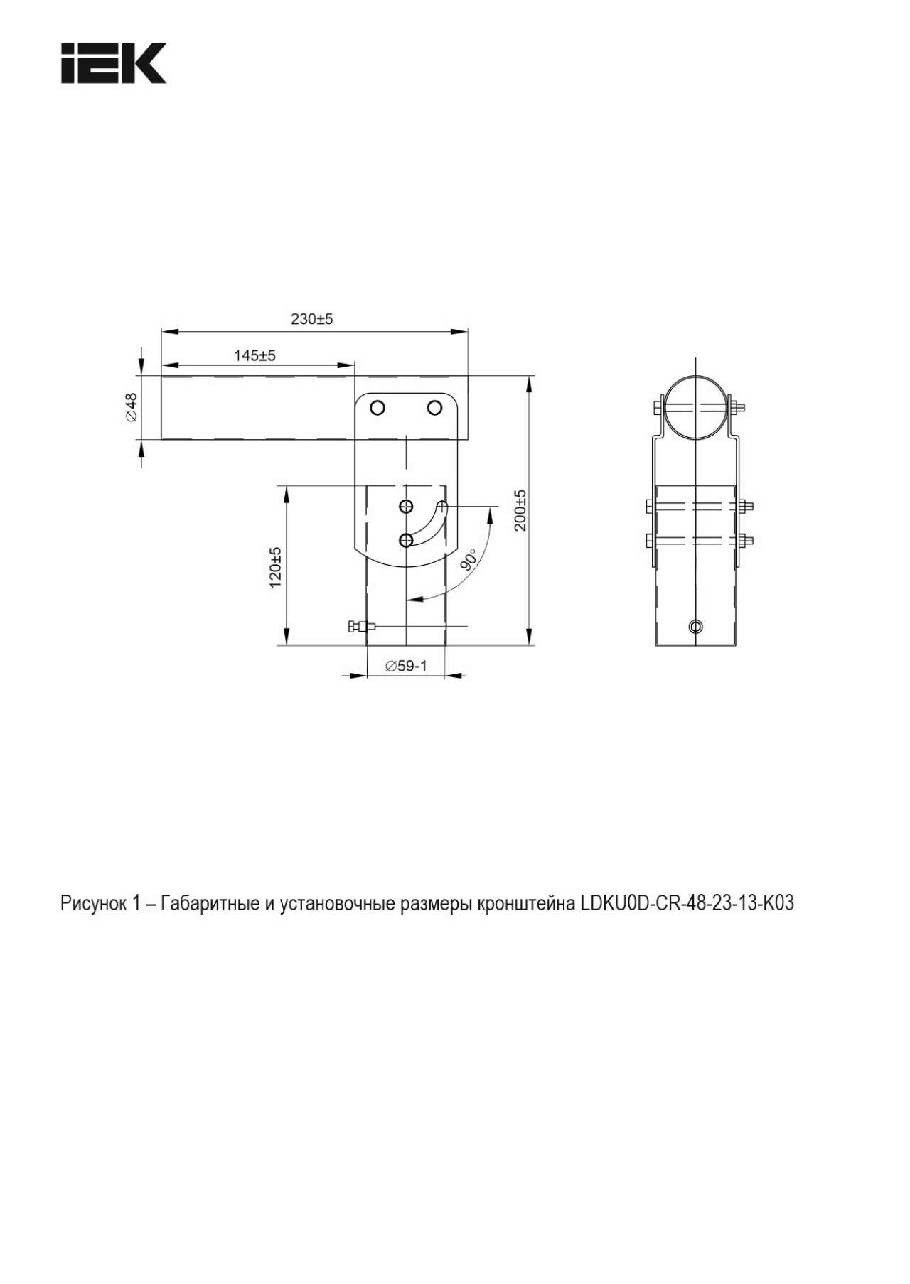 Кронштейн КР-3 D=48 L=230 на трубу регулируемый угол серый IEK