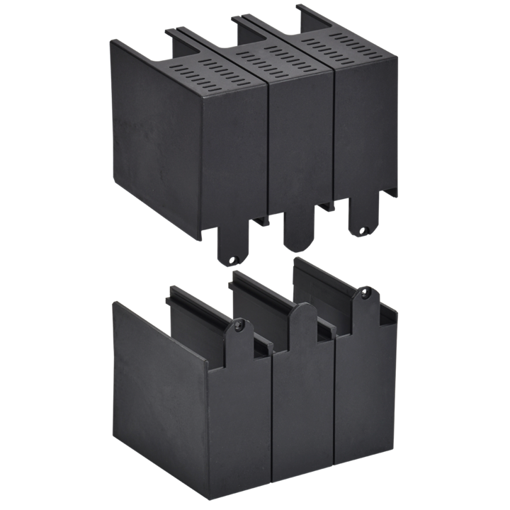 - Использование клеммных крышек повышает безопасность эксплуатации ВА, препятствуя случайному прикосновению к токоведущим частям.
