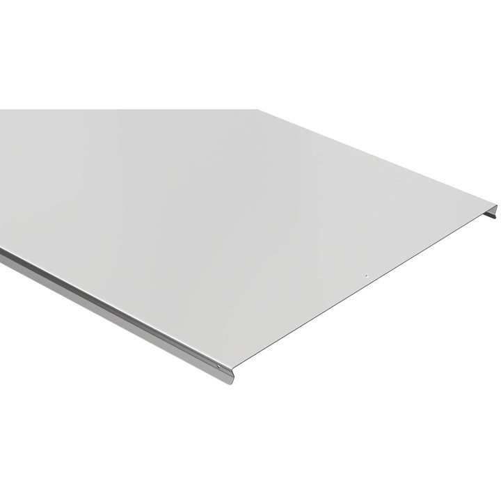 - Замок на крышке позволяет ей надежно держаться при вертикальном монтаже, для ширины от 400 мм рекомендуется применять хомут крышки лотка (CKL10D-HK).