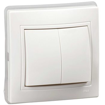 KVARTA Выключатель 2-клавишный 10А IP44 ВС10-2-0-КБ-44 белый IEK