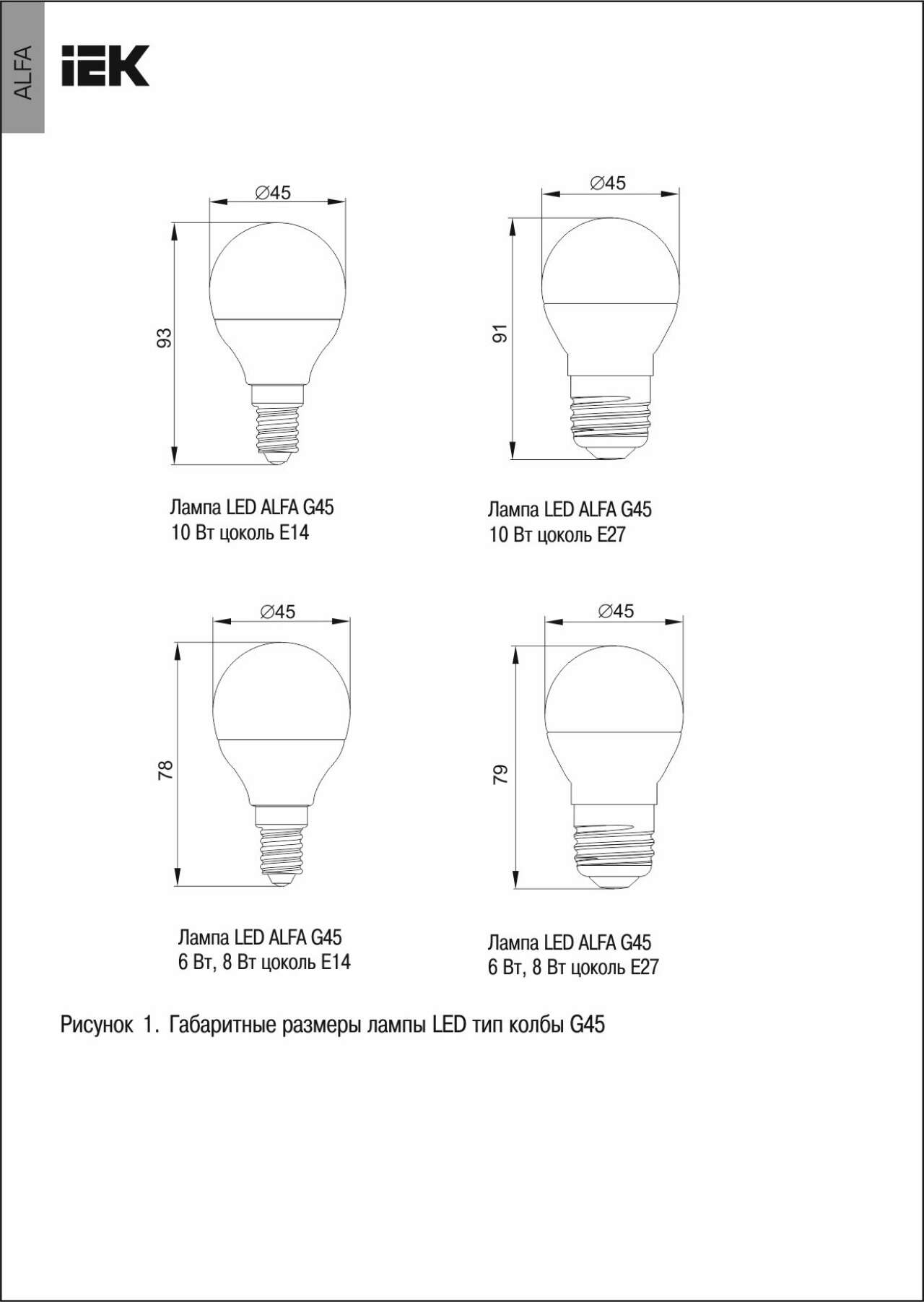 Лампа светодиодная ALFA G45 шар 10Вт 230В 6500К E27 IEK