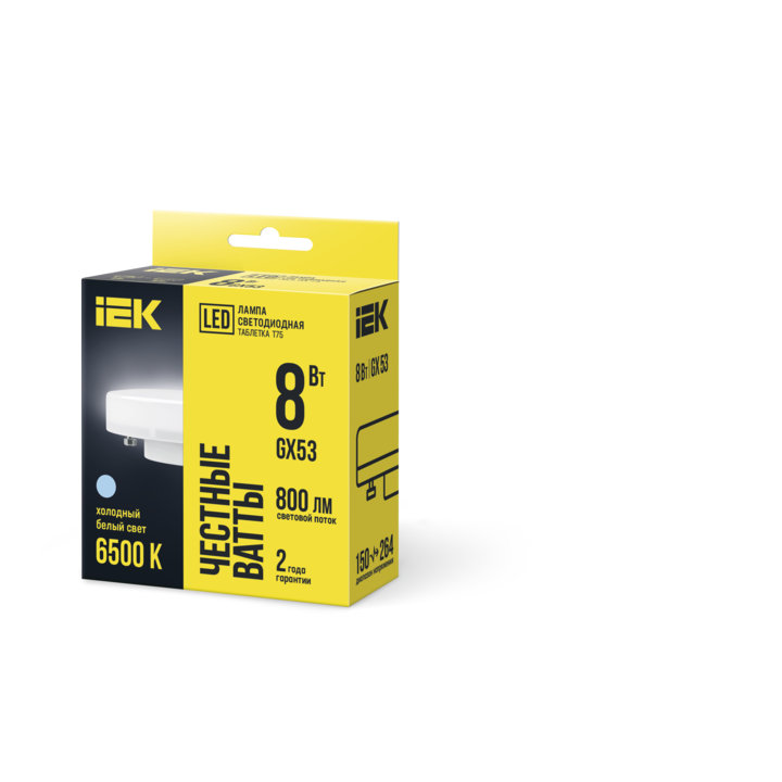 Лампа светодиодная T75 таблетка 8Вт 230В 6500К GX53 IEK LLE-T80-8-230-65-GX53
