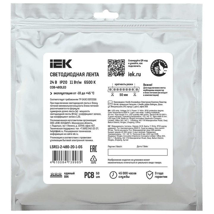- Лента имеет единый BIN, что дает одинаковый цветовой оттенок по всей длине.