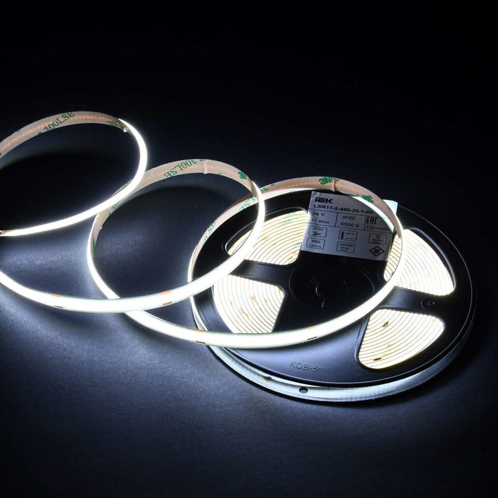 Лента светодиодная 5м COB 480LED/м 11Вт/м IP20 ширина 8мм 24В холодный белый IEK
