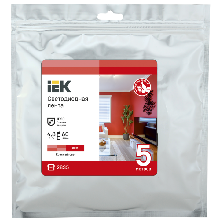 Лента светодиодная 5м LSR-2835R60-4,8-IP20-12В IEK