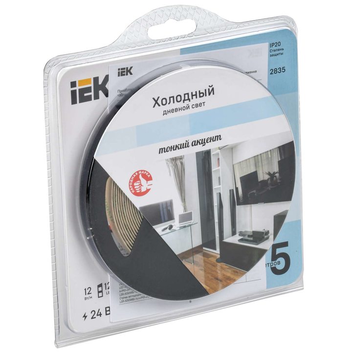 Лента светодиодная 5м LSR-2835W120-12-IP20-24В IEK