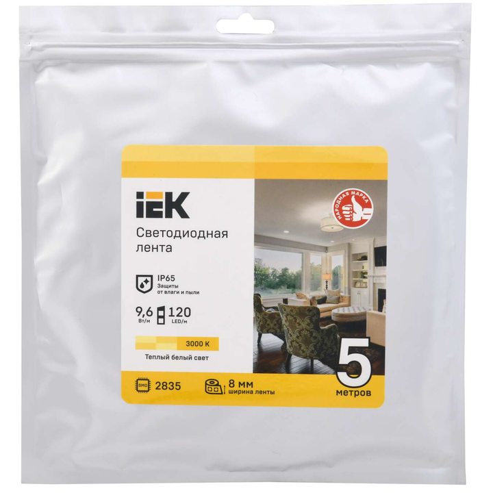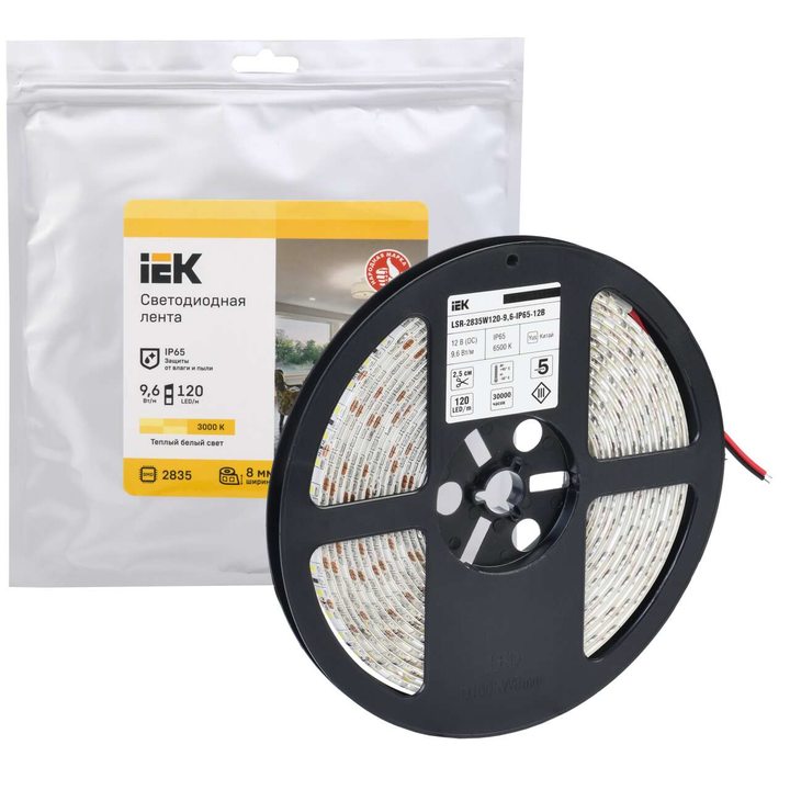 Лента светодиодная 5м LSR-2835WW120-9,6-IP65-12В IEK