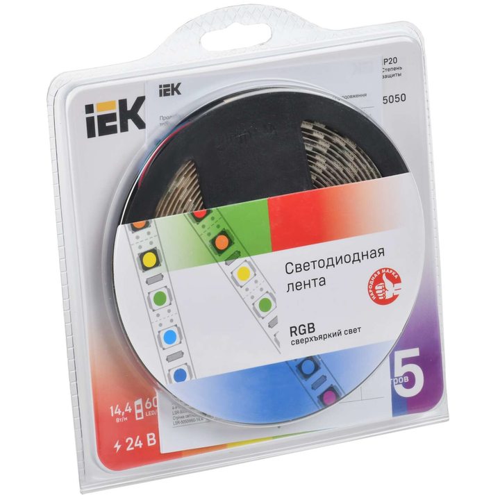 Лента светодиодная 5м LSR-5050RGB60-14,4-IP20-24В IEK