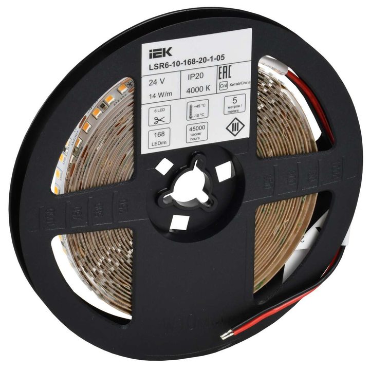 Лента светодиодная 5м SMD2835 168LED/м 14Вт/м IP20 ширина 10мм 24В нейтральный белый IEK