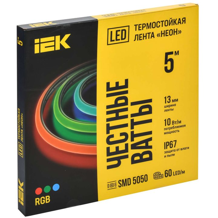 Лента светодиодная неон термостойкая 5м SMD5050 60LED/м 10Вт/м IP67 13мм 24В RGB IEK