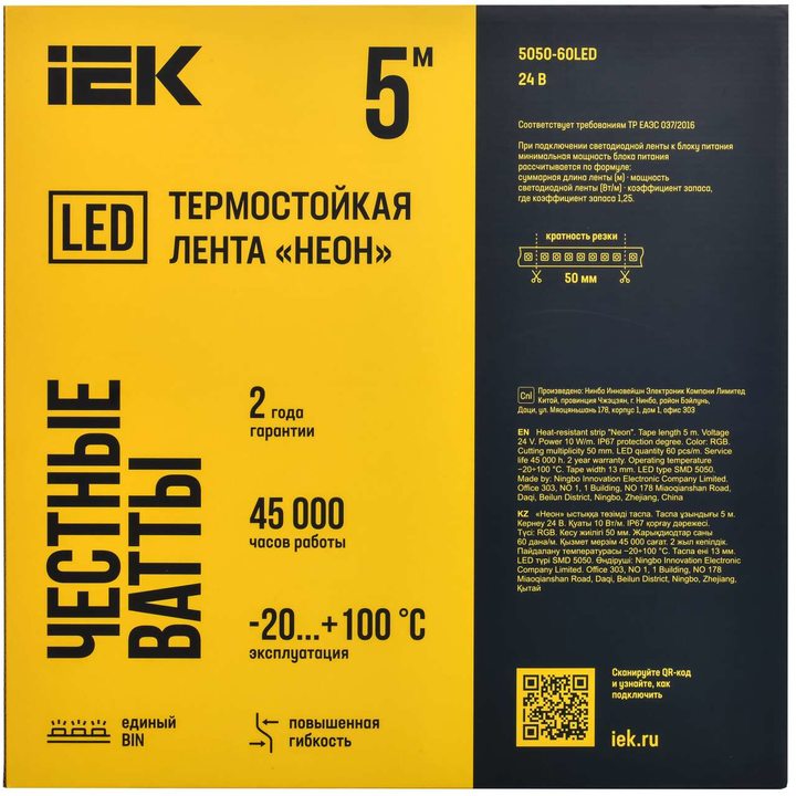 - Высокая степень защиты IP67: "неон" не боится пыли и влаги.