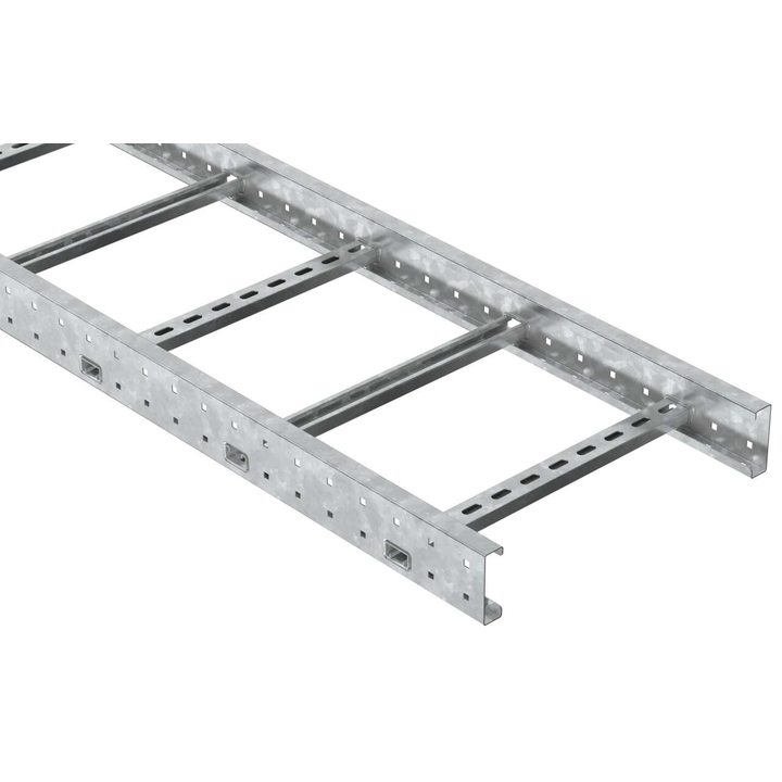 - Конструкция тяжелых лестничных лотков обеспечивает высокую устойчивость к деформации, вибрациям и механическим воздействиям, что позволяет эксплуатировать кабельную трассу при значительных ветровых и снеговых нагрузках.