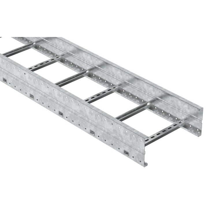 - Конструкция тяжелых лестничных лотков обеспечивает высокую устойчивость к деформации, вибрациям и механическим воздействиям, что позволяет эксплуатировать кабельную трассу при значительных ветровых и снеговых нагрузках.
