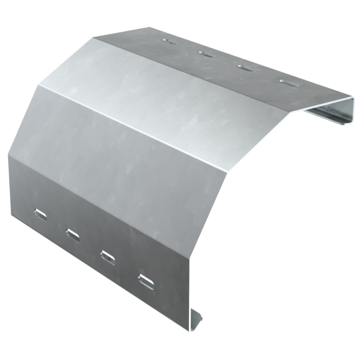 - Спуск кабеля предназначен для лестничных лотков, фиксируется на перекладину, обеспечивает аккуратный спуск кабеля к оборудованию и предотвращает его повреждение за счет плавного изгиба.