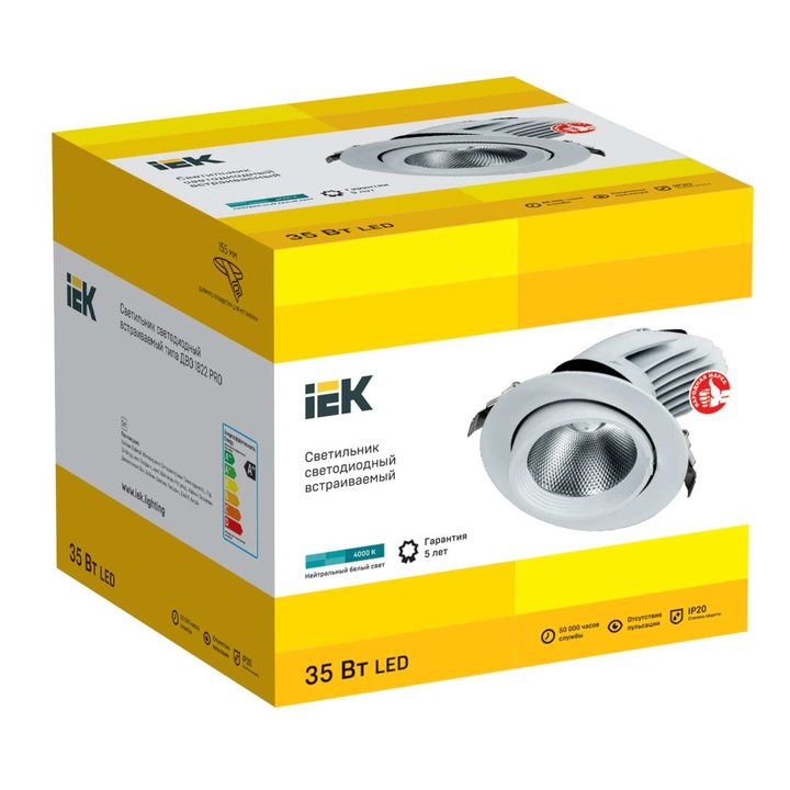 LIGHTING PRO Светильник светодиодный поворотный ДВО 1822 35Вт 4000К IP20 круг белый IEK