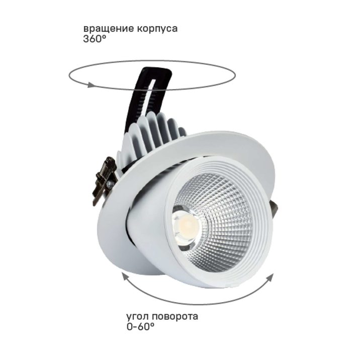 - Угол наклона 0-60° и вращение корпуса на 360° обеспечивают абсолютную свободу в регулировке светого потока.