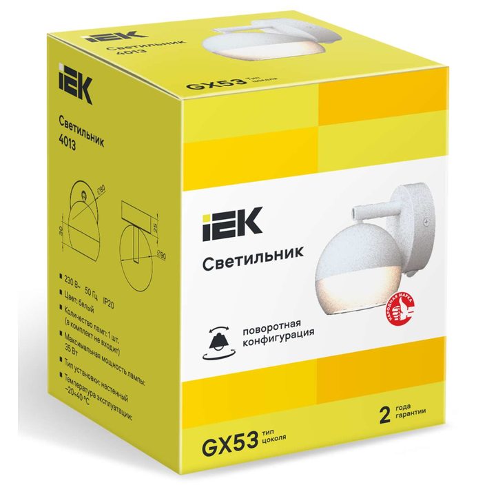 LIGHTING Светильник 4013 накладной настенный под лампу GX53 белый IEK