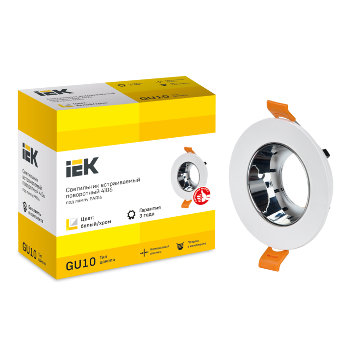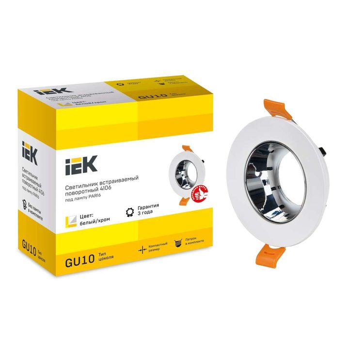 LIGHTING Светильник 4106 встраиваемый поворотный под лампу GU10 белый/хром пластик IEK