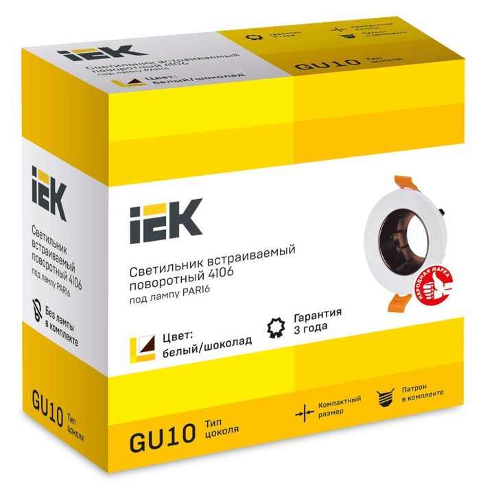 LIGHTING Светильник 4106 встраиваемый поворотный под лампу GU10 белый/шоколад пластик IEK