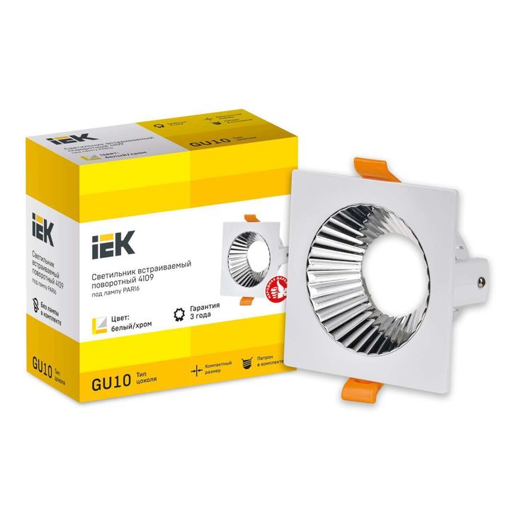 LIGHTING Светильник 4109 встраиваемый поворотный под лампу GU10 белый/хром пластик IEK