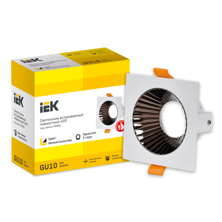 LIGHTING Светильник 4109 встраиваемый поворотный под лампу GU10 белый/шоколад пластик IEK