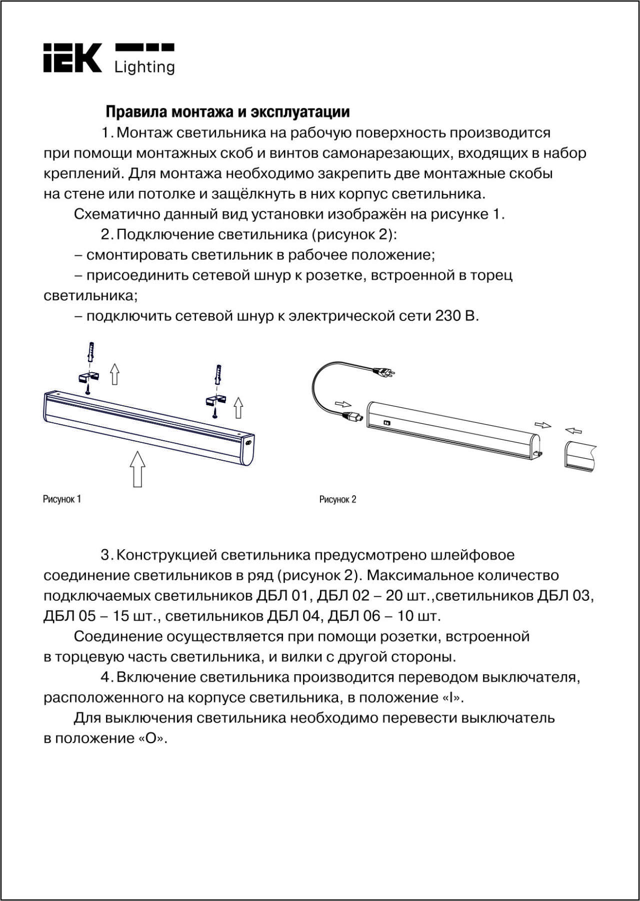 - Светильник оснащён встроенным выключателем позволяющим выключать и включать светильник, не отключая питающий провод от сети.