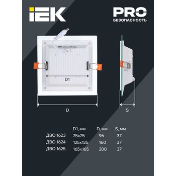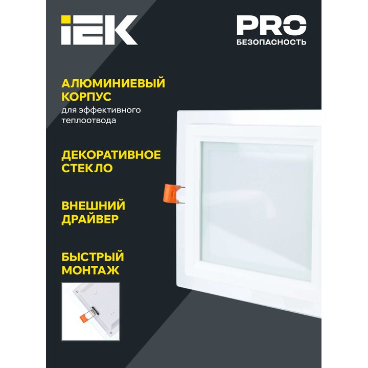 LIGHTING Светильник светодиодный ДВО 1624 со стеклом квадрат 12Вт 4000К IP20 IEK