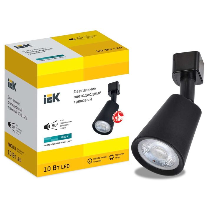 LIGHTING Светильник светодиодный трековый ДТО 1403 10Вт 4000К однофазный 50град черный IEK