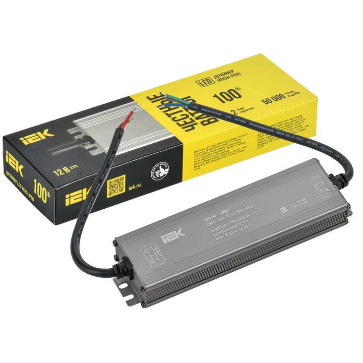 Драйвер LED ИПСН-PRO 5050 100Вт 12В блок-шнуры IP67 ИЭК